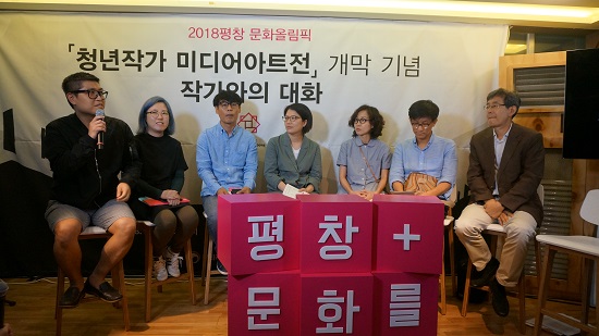 학창시절 시험에 항상 따라다녔던 문제, “작가의 의도는 무엇일까?” 가장 정확한 답은 사실 작가만이 알고 있다. 작가에게 직접 듣는 작품 설명에 작가와 함께 보는 작품 첫 공개까지, 지난 29일 ‘평창, 문화를 더하다-청년작가 미디어예술 서울편’ 개막 기념 ‘작가와의 대화’가 서울역 카페 ‘자리’에서 개최됐다.