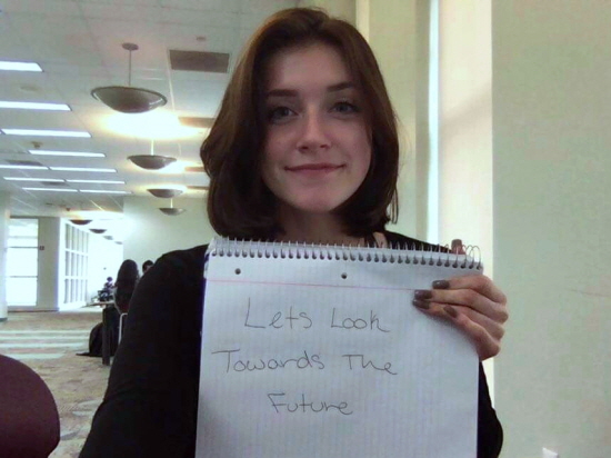 ‘2018 남북정상회담’과 관련해 ‘미래를 내다보자’는 응원의 메시지를 적어준 한나(Hannah Gonzales, 19, 미국) 씨.(사진=Hannah Gonzales 제공) |