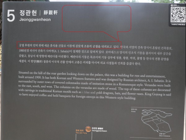‘정관헌’을 소개하는 안내판. |