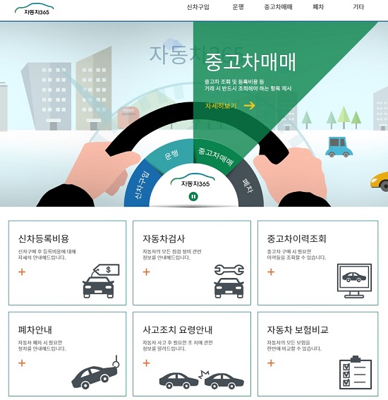 자동차365에는 신차·중고차 여부와 관계없이 차량 구매금액과 배기량, 등록지역만 입력하면 공채를 포함한 등록비용을 간단히 계산해주는 기능이 있다. 허위매물 등 중고차 구입 시 문제 될 수 있는 이력을 조회해 확인하고 중고차 매매상사나 종사자 등록 여부 등도 볼 수 있다.