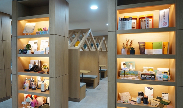 ‘소셜캠퍼스 경기’에 입주한 기업들이 생산한 제품들이 전시돼 있다. |