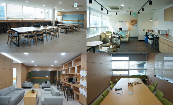 제가 직접 방문한 ‘소셜경기’의 경우 상주 기업은 입주 신청한 기업 중 심사를 통해 28개 기업이 선정돼 기업별로 개별 공간을 제공받고 있었습니다. 책상, 의자, 캐비넷 등 사무기구는 물론 회의실, 교육실, 휴게실 등 비즈니스 공간, 공용 OA장비(복합기)도 무상 제공됩니다. 입주기간은 최초 1년이며, 평가에 따라 6개월씩 2회 연장이 가능해 최대 2년까지 사무실 이용이 가능합니다. 또한 코워킹 기업(비상주 기업으로 시설 및 공간을 공유)도 22개 기업이 선정돼 코워킹존, 회의실, 이벤트홀을 수시로 사용합니다.