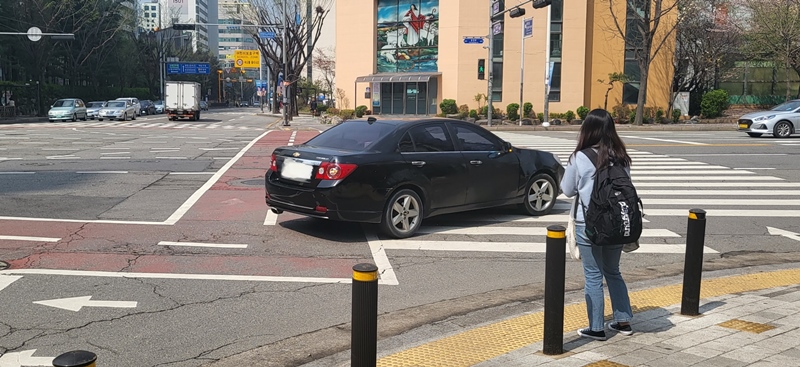 며칠 전 아침, 학교에 가려고 동생과 함께 지하철역을 향해 걸어가는 길이었다. 보행자 신호가 초록색으로 바뀌자 앞서 걸음을 옮기려던 동생이 어깨를 흠칫 떨면서 뒷걸음질쳤다. 코너를 돌던 차량이 속도를 줄이지 않고 그대로 우회전을 한 것이다. 조금이라도 빨리 걸었으면 그대로 치일 뻔했던 아찔한 상황이었다.