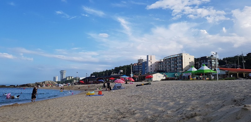 사람들이 많이 찾는 강원도 강릉의 한 해변가.