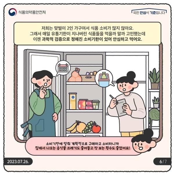 이제 식품 소비의 새로운 기준이 될 소비기한 표시제도가 안착되며 국민들의 식품 소비 패턴 등에도 분명 변화가 생기게 될 듯하다. 무엇보다 평소 식습관 등을 고려해 적정량을 구매하고 또 바로 섭취하는 것이 바람직하다고 볼 수 있겠다.