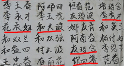 | 한 벽보에 붙어 있는 중국인의 이름들 |