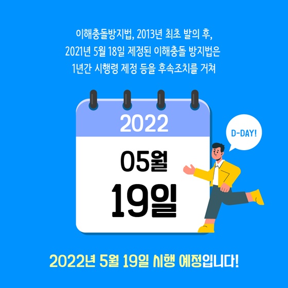 이해충돌방지법, 2013년 최초 발의 후, 2021년 5월 18일 제정된 이해충돌 방지법은 1년간 시행령 제정 등을 후속조치를 거쳐 2022년 5월 19일 시행 예정입니다!